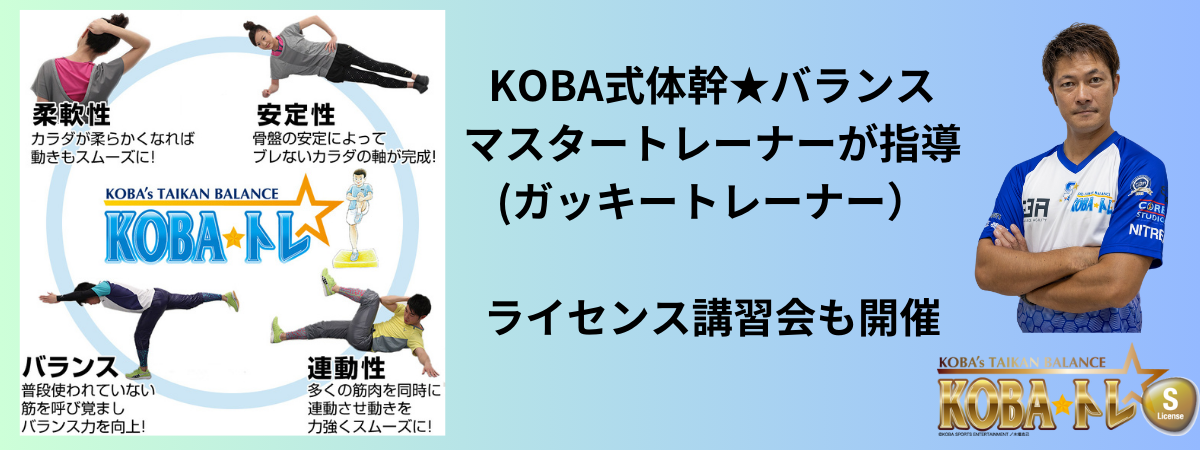 | 設備 | KOBAトレトレーニンググッズ、TRXサスペンション、FLOWIN、バランスボール |